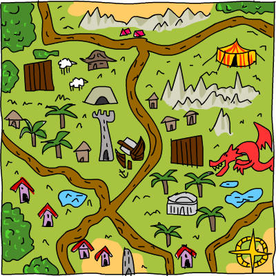 Find the buried treasure by clicking on a place on the map. The space underneath the map will tell you how close you are to the location of the buried treasure by warm, cold, of freezing.